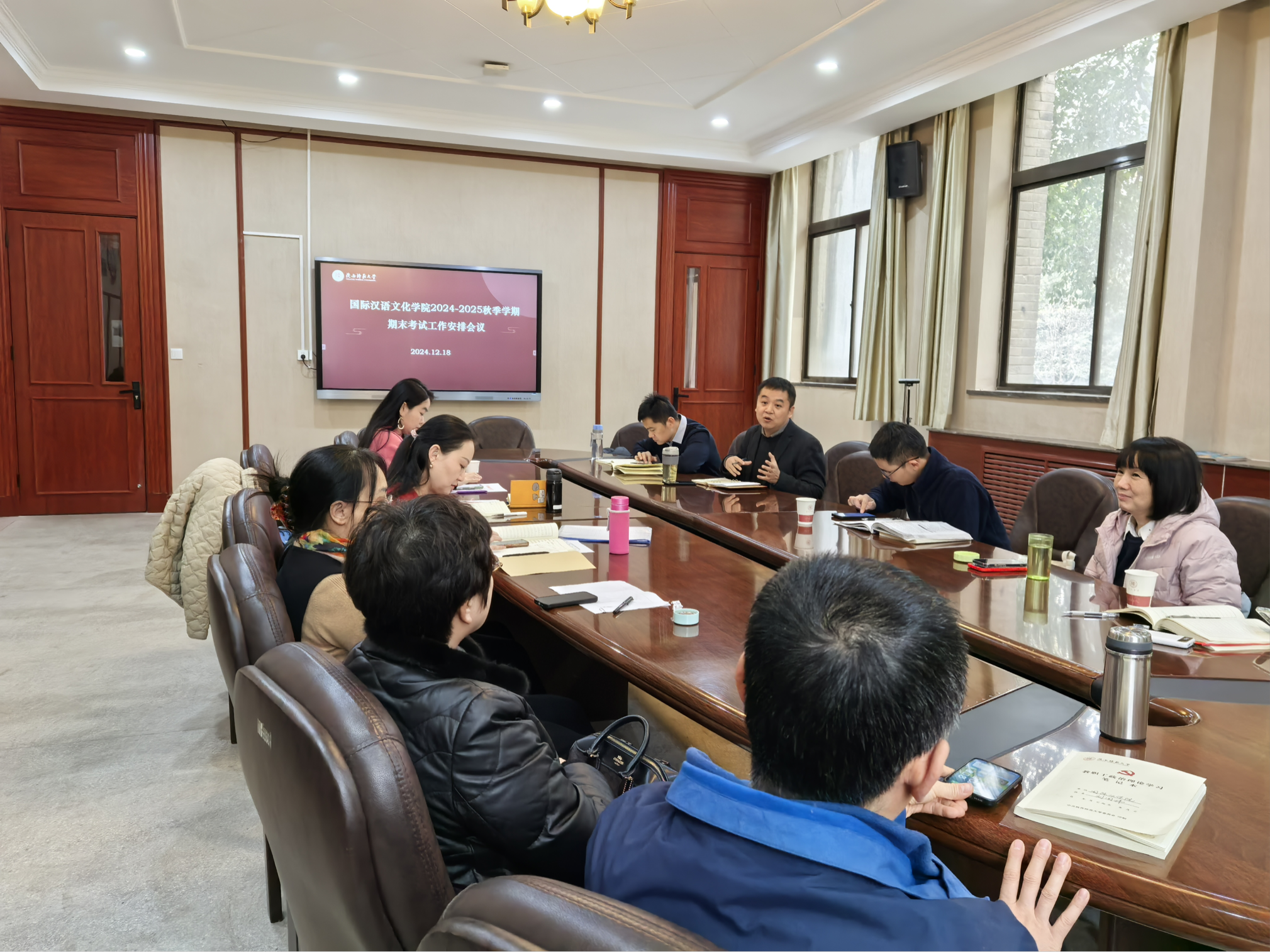 12月18日下午,十三水 召开了2024-2025学年第一学期期末考试工作会议,会议由贾泽林副院长主持。会上,贾泽林向全体教师传达了学校教务处关于期末考试工作会议的精神,并结合十三水 教学工作的实际情况对期末考试工作做出了安排,明确了相关工作规范和相关流程。最后,与会老师围绕部分工作细节进行了讨论,明确了各项工作内容和责任。本次会议为十三水 留学生期末考试工作的顺利开展提供了保障。