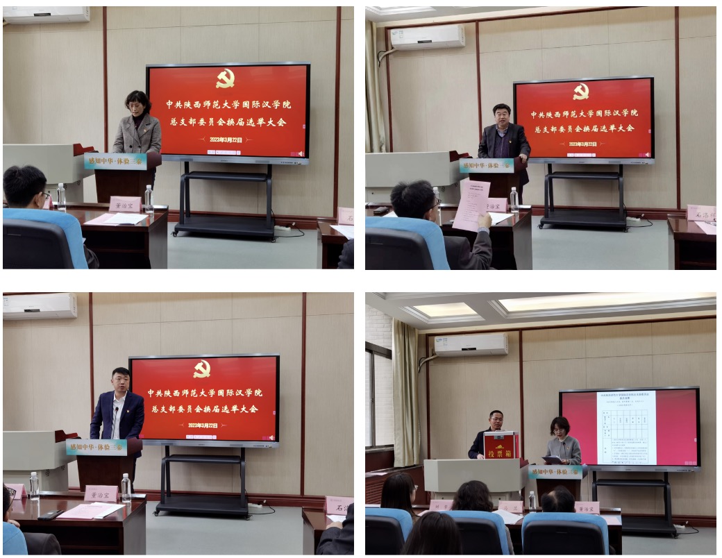 总支部委员会换届选举大会。学校党委常委、副校长董治宝和组织部副部长兼组织员办公室主任刘芳莅临大会,十三水