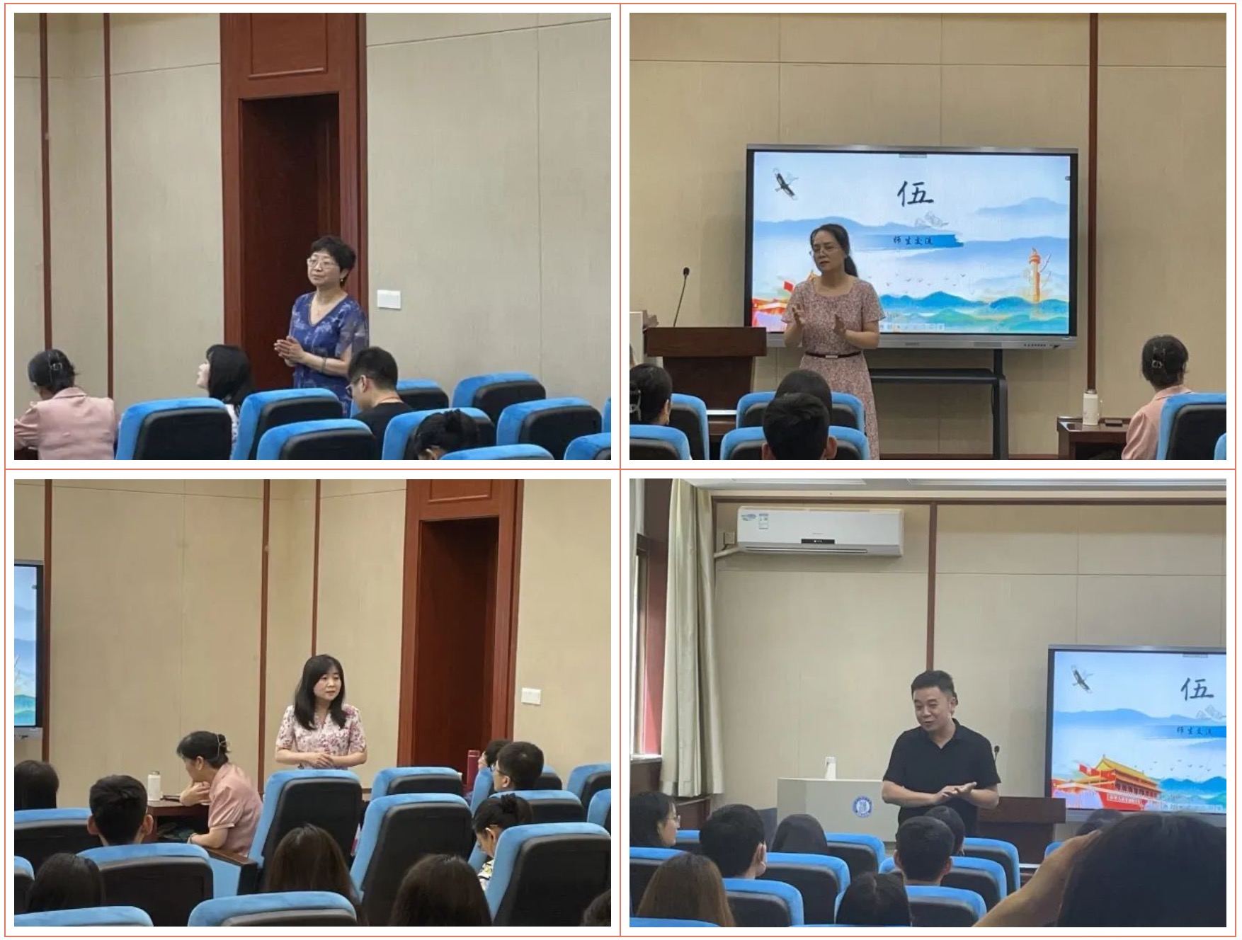 活动伊始,中华文化国际传播党支部书记邵英就“四有”老师这一主题进行发言,深入浅出地向全体师生党员及积极分子阐释了“四有”老师的明确要求,鼓励全体师生为发展中国特色、世界水平的现代教育添砖加瓦。