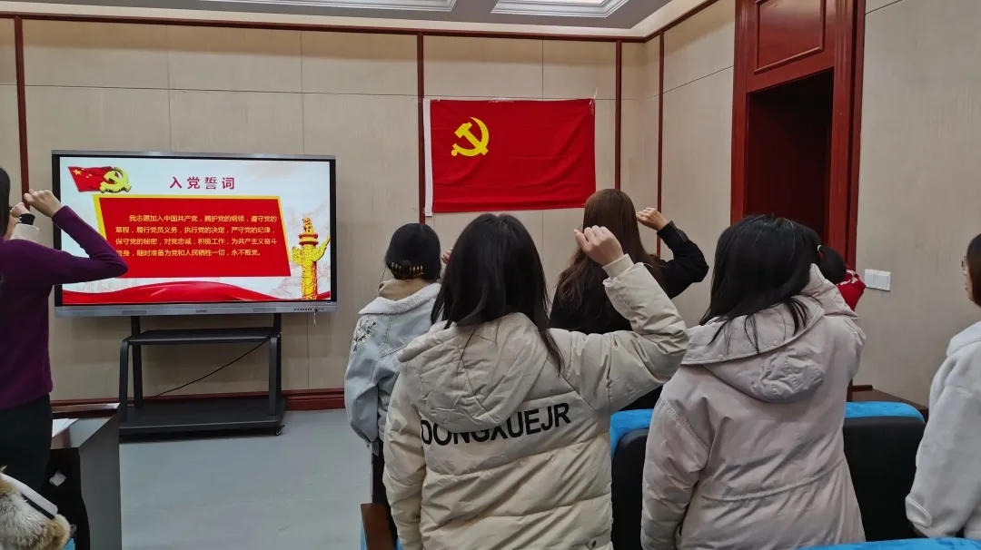随后,预备党员代表魏丹文做了发言,她谈到入党宣誓象征着一名党员政治生命的开始,在座党员一定要不断提升思想政治修养,认真执行党和国家的各项方针政策,充分发挥党员的先锋模范作用。预备党员丁鑫美、尹冰倩和刘一瑶也谈到,党员要时刻忠诚于党和人民,要将自己的智慧和热血融入到新时代中国特色社会主义建设中,用时间、行动践行自己今天的誓言。