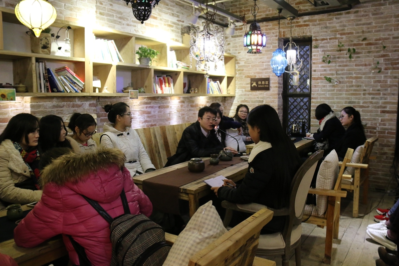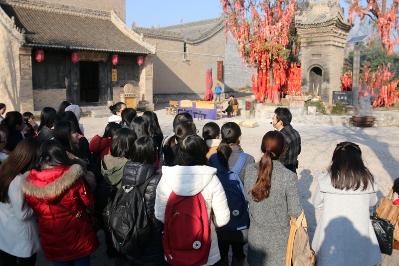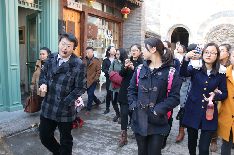 袁家村游客接待中心负责人栗志为同学们进行了讲解。他首先对袁家村1958年到1992年的发展历史进行了回顾。介绍了袁家村村民从生活十分贫困到在党的带领下发展农业、以建材工业为主体的村办工业以及房地产业、文化旅游业、高科特产业的艰辛历程。他总结说,袁家村能取得这样的成绩,除了党的政策引导以及各级领导和同仁的支持帮助,更离不开团结一致积极进取,带领群众苦干实干的村领导班子及袁家村每一位村民的勤劳与智慧。