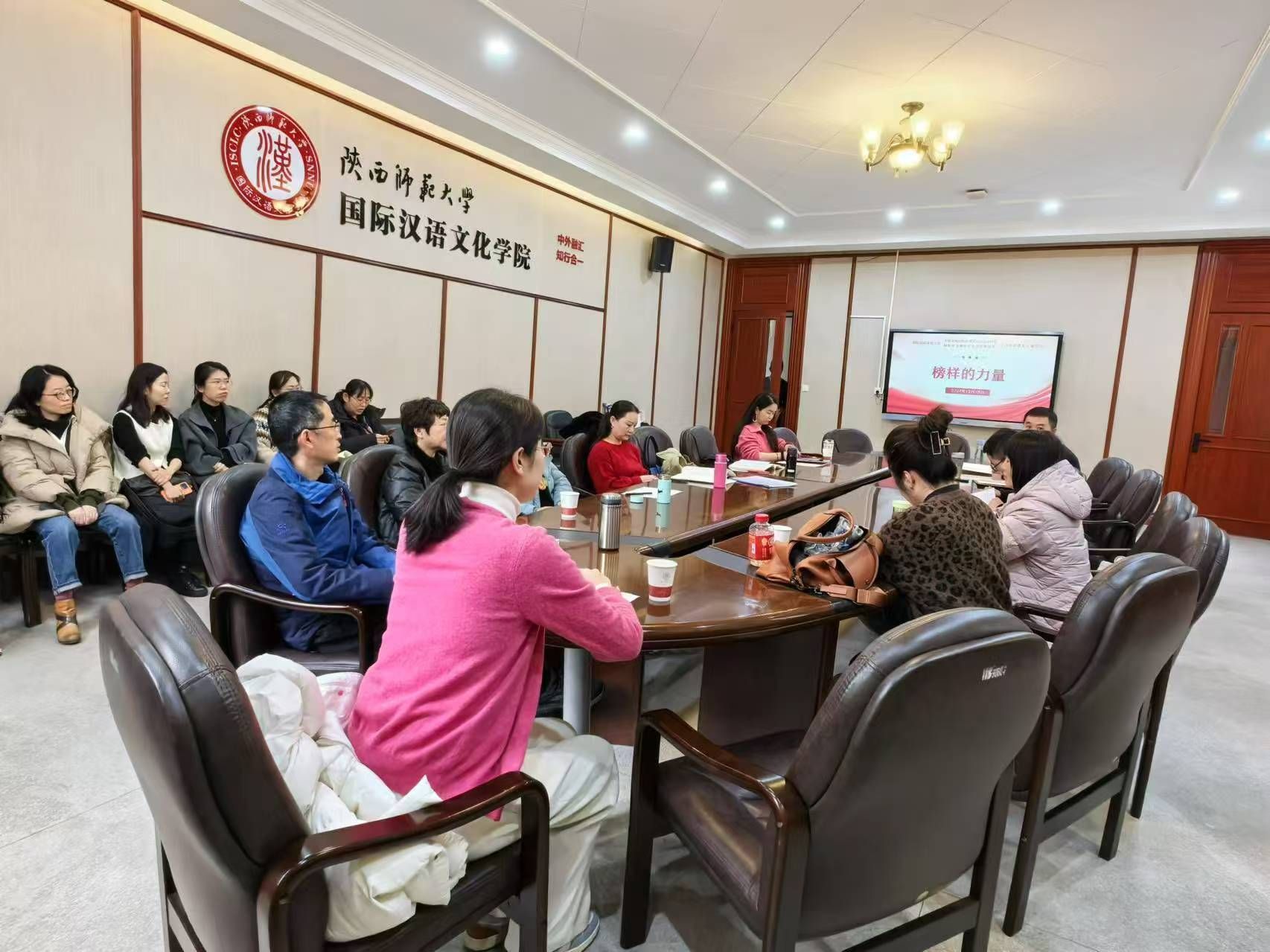 中华文化国际传播和国际中文教育两个教师党支部及教研室联合举行了 12 月集中政治理论学习活动,此次学习聚焦“榜样的力量”这一主题,旨在通过学习先进典型,提升教师思想政治素养与师德师风水平,推动十三水