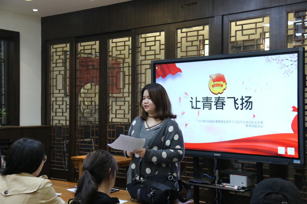 近日,为学习宣传贯彻习近平总书记讲话精神,十三水 2015级汉语国际教育全体本科生在十三水 唐风汉语教室开展了“学习习近平总书记在北京大学师生座谈会上的讲话”主题教育活动。活动由本科生党支部宣传委员包昱和团支部书记孙达静文共同主持。
