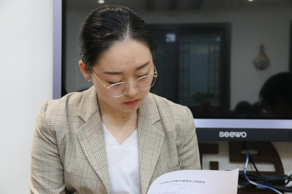 团支部为每位同学配发了一份习近平总书记在北京大学师生座谈会上的讲话原文,全体同学首先认真阅读了习近平总书记的讲话。阅读完毕后,集体观看了北京大学在校学生为迎接“五四”青年节和北大百廿校庆制作的短视频,在感受青年学子良好风貌的同时,开始了今天的讨论。