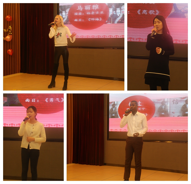 副教授周利芳、特聘音乐教师周茹洁、留学生办公室主任朱卫强、团总支书记谢婷、留学生办公室黄璐担任评委。