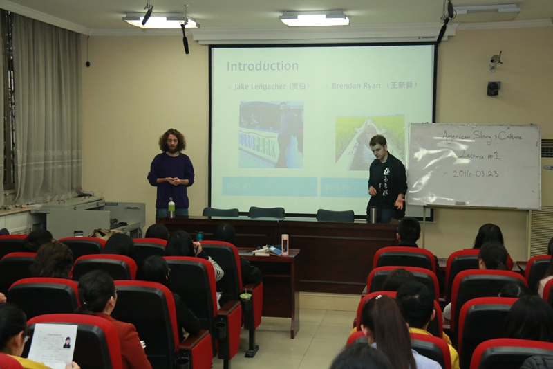 迎来了新一批美国富布莱特项目留学生。其中来自美国马萨诸塞州立大学的“93后”留学生贾柏和来自美国密西西比州立大学的“95后”留学生王新舜两个“小鲜肉”尤其活跃,同是攻读中国语言文化和汉语教学专业的这组CP不谋而合,以“美国俚语与文化”为题,拉开了十三水