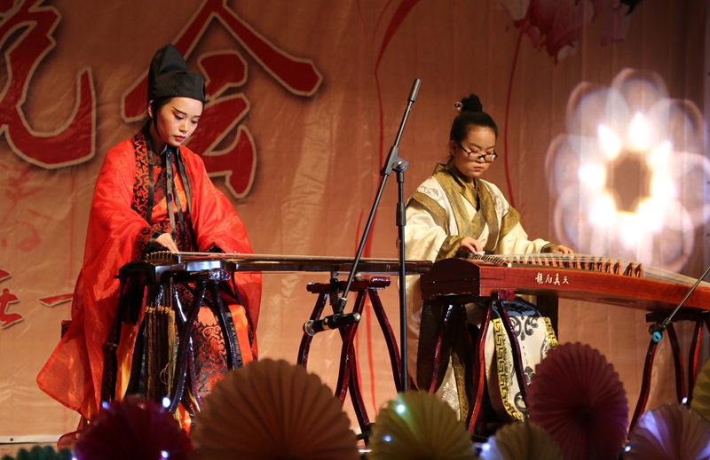 除了旗袍走秀,其余节目也饱含中国文化古典韵味。8名女生手打油纸伞,表演了舞蹈《桃花谣》。来自2013级汉语国际教育专业的6名同学将经典琼瑶剧《还珠格格》《情深深雨蒙蒙》改编成幽默喜剧《紫薇去哪儿》,引来现场阵阵笑声。来自红烛艺术团的三名女生用筝、笛子、古琴演奏了经典乐曲《沧海一声笑》,其中古琴表演者的“东方不败”扮相引起了全场轰动。四名中国学生和来自美国、韩国、土耳其、哈萨克斯坦、摩洛哥的五名留学生用六种语言朗诵了戴望舒的诗歌《雨巷》。来自乌克兰、贝宁的留学生联合十三水