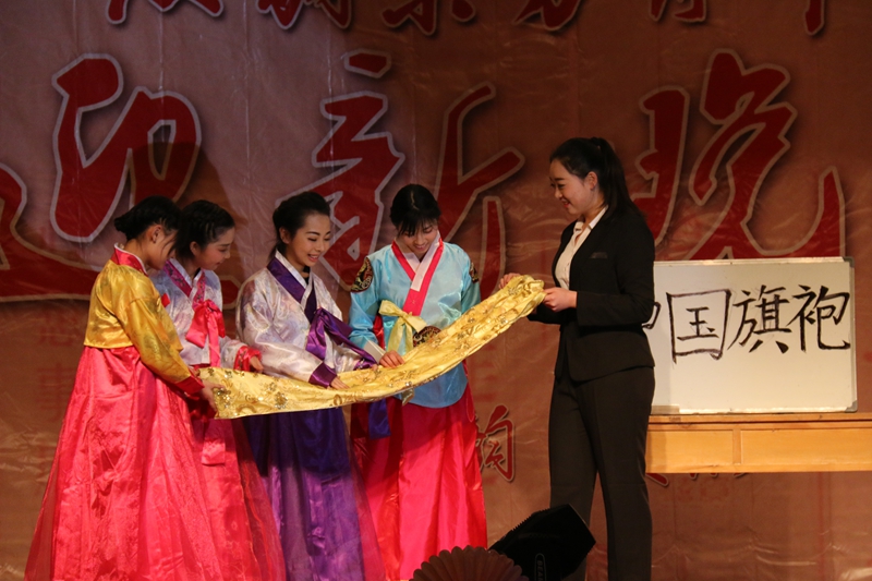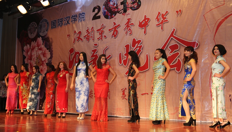 教师一起演唱了中国流行歌曲,12名哈萨克斯坦籍留学生表演了哈萨克斯坦民间传统舞蹈。最后,伴随着一首《茉莉花》,所有中外学生模特身着旗袍走上舞台,至此,这场旗袍主题迎新晚会圆满落下帷幕。