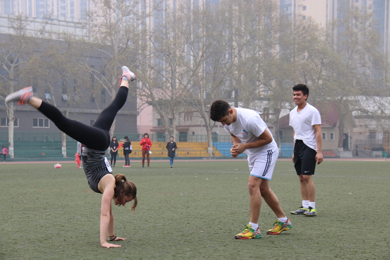教师孙建伟、王作良“厮杀激烈”,他们一点都没有因为对方的身份而“照顾客气”,双方都全身心投入“战斗”,最终年轻的韩国学生们获胜。运动会在中外共竞、师生同乐的气氛中圆满落下帷幕。