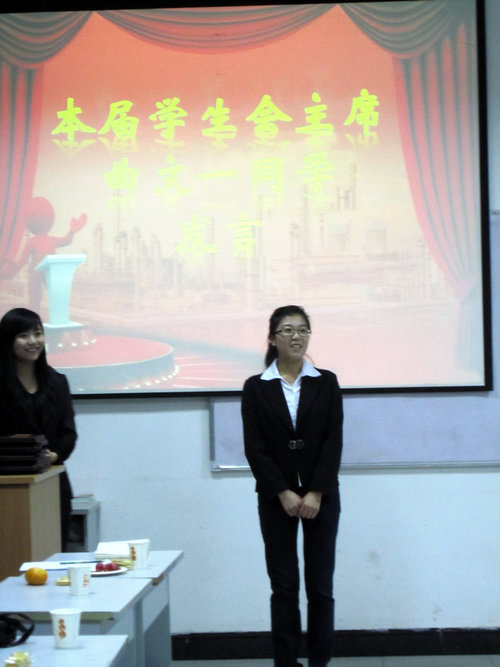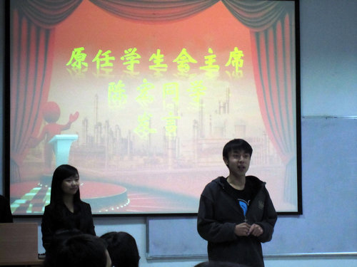 原学生会主席陈宏对上一学年学生会的工作做了总结,也对新一届的干部提出了希望,希望新一届学生会干部可以踏踏实实的工作,超过上一届。