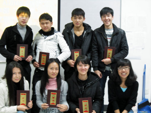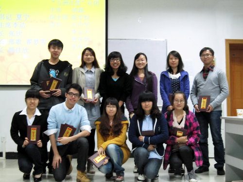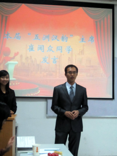 胡丹老师对以陈宏、胡越同学为代表的上届学生会及“五洲汉儒”(现更名为“五洲汉韵”)优秀干部进行表彰。同时任命了新一届干部成员。