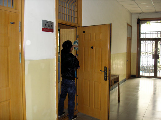 公共区域卫生的形式表达了渴望回报老师、回报母校的感恩之情。 打扫卫生原本是一件很累很枯燥的活儿,但是这一群对母校充满依恋的对外汉语2008级党员们却把它演绎成为一份对母校的依依的感念,一份对老师的深深的敬意,一份对学弟学妹的浓浓的关爱:轻轻擦拭记录荣誉的照片,见证了他们的成绩;小心传递十三水