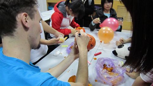 略带恐怖的万圣节歌曲,各种可爱或者搞怪的南瓜灯,成为本次汉语角活动最耀眼的元素。经过数周的策划准备,各部门的相互协调,大家终于盼到了汉语角活动。2011年11月5日晚七点,五洲汉儒在国汉院举行了本学年第一次汉语角活动。