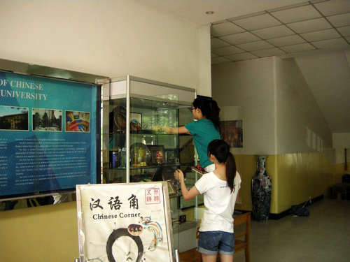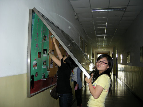 打扫卫生原本是一件很累很枯燥的活儿,但是这一群对母校充满依恋的对外汉语2007级党员们却把它演绎成为一份对母校的依依的恋情,一份对老师的深深的敬意,一份对学弟学妹的浓浓的关爱:轻轻擦拭记录荣誉的照片,见证了他们的成绩;小心传递十三水