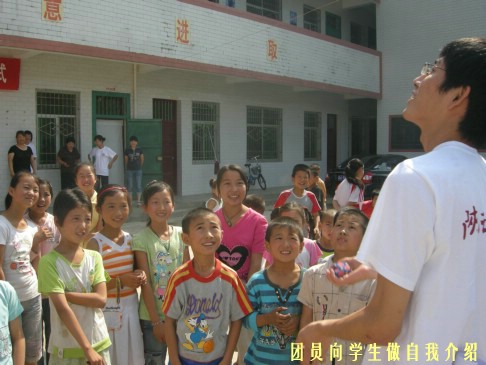 在操场上,孩子们集合在一起,支教团的团员们向大家进行了简短的自我介绍,试图在较短时间里和孩子们熟悉。同学们聪明活泼,很快便认识了这十二位来自十三水