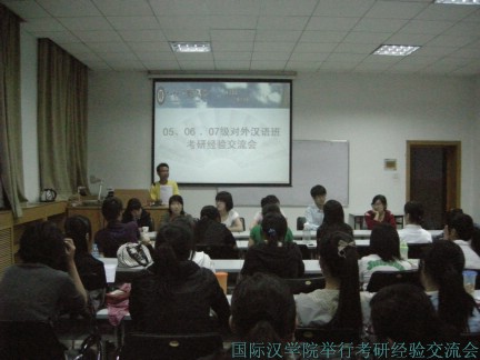 副院长赵学清、辅导员胡丹、05级对外汉语班考取研究生的学生代表以及06级对外汉语班同学进行了亲切座谈。