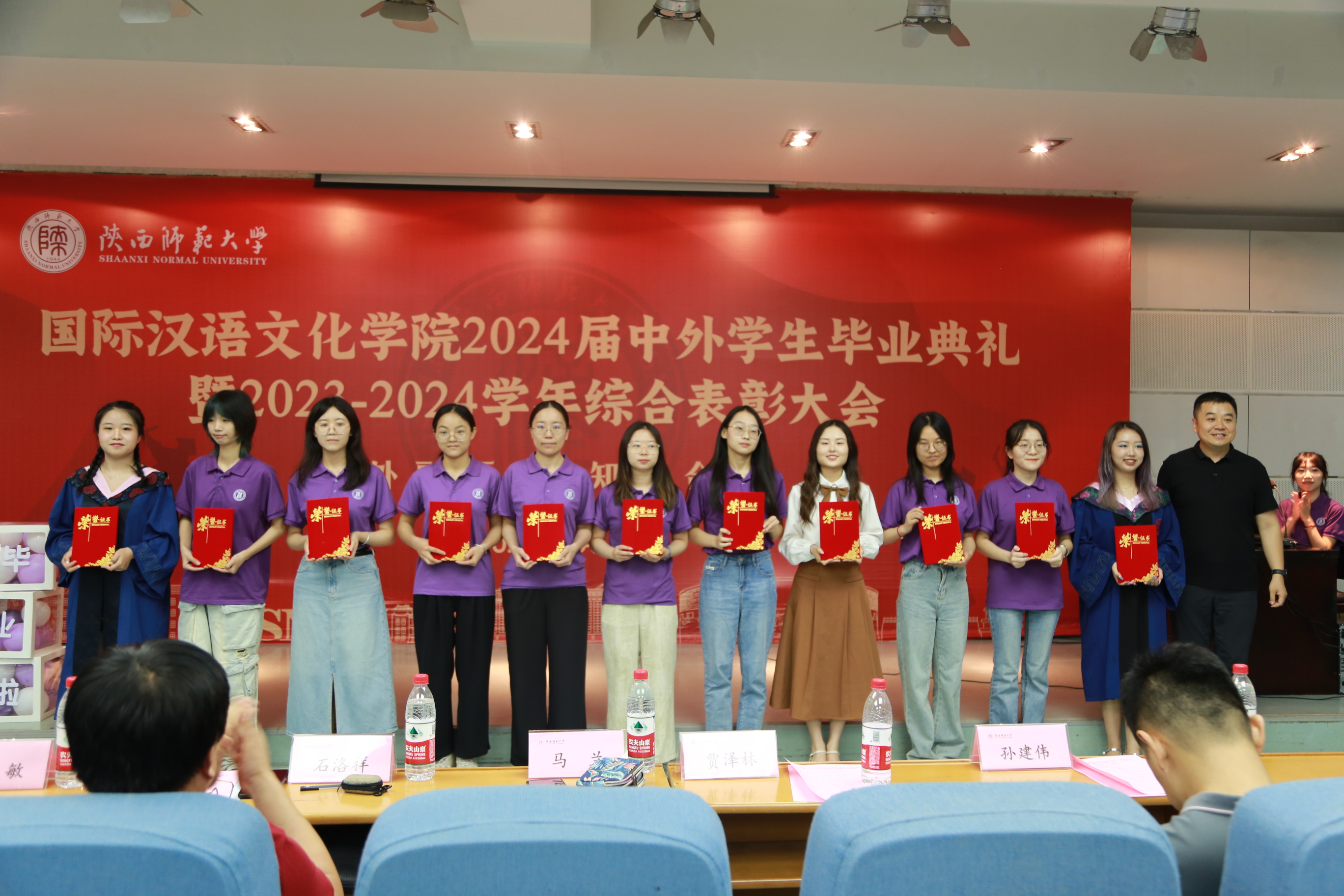 研究生导师代表、留学生班主任代表、辅导员、中外学生代表及毕业生家属代表共同参与了此次活动。表彰大会及毕业典礼由十三水