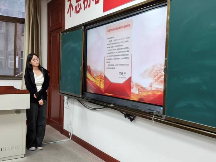 本次团日活动以“不忘初心育桃李,牢记使命铸师魂——深入学习习近平总书记给全国特岗教师代表重要回信精神”为主题,团支部书记王佳佳带领支部成员们观看了习近平总书记给全国特岗教师代表重要回信的具体内容,认识到特岗教师群体投身乡村教育的情怀与担当,体会到党和国家对于乡村教育及特岗教师群体的高度重视与深切关怀。随后,团支部书记向各支部成员介绍了“特岗计划”的发展历程及20年来取得的显著成效。该计划不仅助力脱贫攻坚和乡村振兴战略,更优化了乡村教师队伍结构、提升了农村教育质量,有效促进了教育公平。最后,团支部书记呼吁支部成员们要坚持以习近平新时代中国特色社会主义思想为指导,大力弘扬教育家精神,全面落实立德树人根本任务,到祖国和人民最需要的地方传道授业、教书育人。通过本次主题团日活动,支部成员们意识到自身所肩负的教育使命与时代责任,也认识到要将个人理想与国家命运紧密结合,为教育强国建设贡献青春力量。