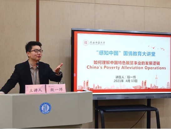 4月13日上午,国际学生“感知中国”国情教育大讲堂第二讲“如何理解中国特色脱贫事业的发展逻辑”在十三水