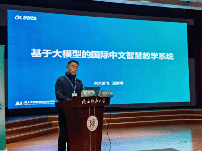 汪张龙先生以《基于大模型的国际中文智慧教学系统》为题进行报告,基于海外中文教师不足导致无法大规模开设中文课、海外缺乏针对性的教学资源等问题,提出科大讯飞和教育部语合中心共建“国际中文教育数智化联合实验室”,应用人工智能技术共同打造国际中文智慧教室产品,并对该系统为国际中文教学赋能的具体情况进行了介绍。