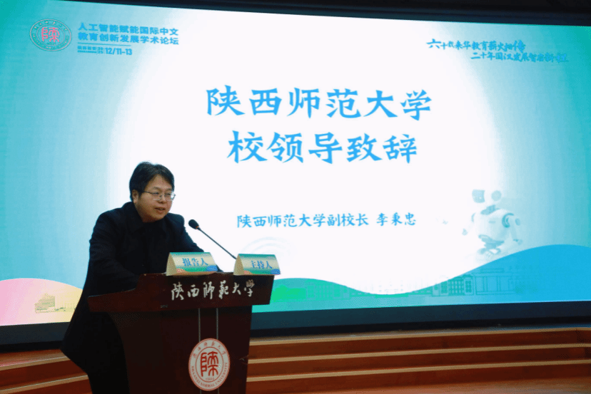 李秉忠副校长在致辞中指出,人工智能技术正以“数智化、融合化”的特征重塑教育生态,机遇与挑战并存。如何让AI既成为“教学助手”又守住“育人初心”,如何通过技术创新让中文教学更高效、更生动、更贴近不同文化背景学习者的需求,正是本次研讨会需要破解的核心命题。