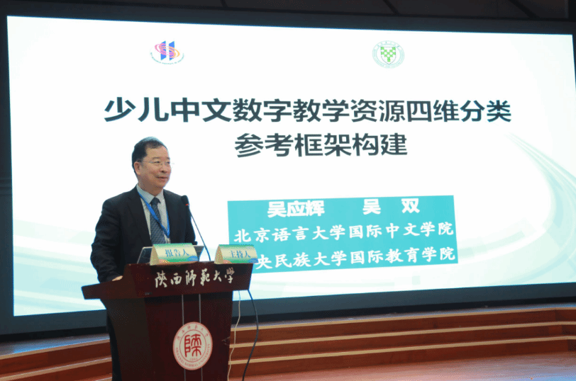 吴应辉教授以《少儿中文数字教学资源四维分类参考框架构建》为题进行报告,针对少儿中文教育数智化领域研究中分类标准缺失这一问题,从年龄认知维度(幼儿、儿童和青少年三龄段)、教学功能维度(内容型/工具型/服务型)、活动结构维度(教学型/探究式/协作型/情景化/游戏类)和技术类型维度(数字课程/数字教学及教辅材料/数字平台)四个视角构建了一个全新的“少儿中文数字教学资源四维分类框架”,为相关研究提供了系统化、结构化的分类依据和应用参考。