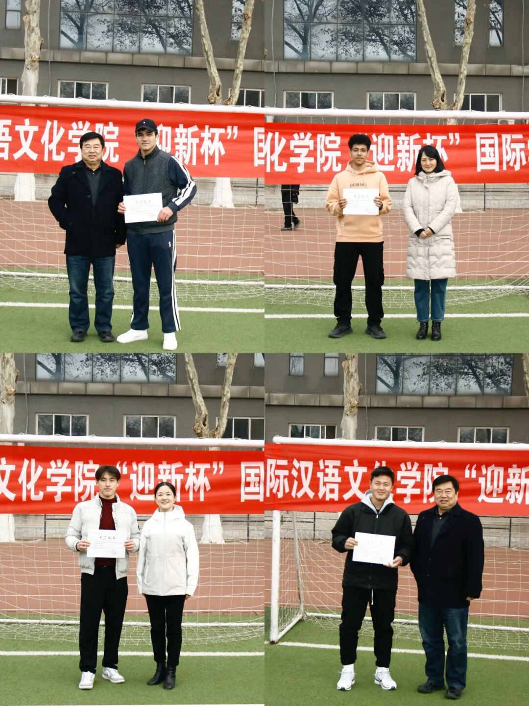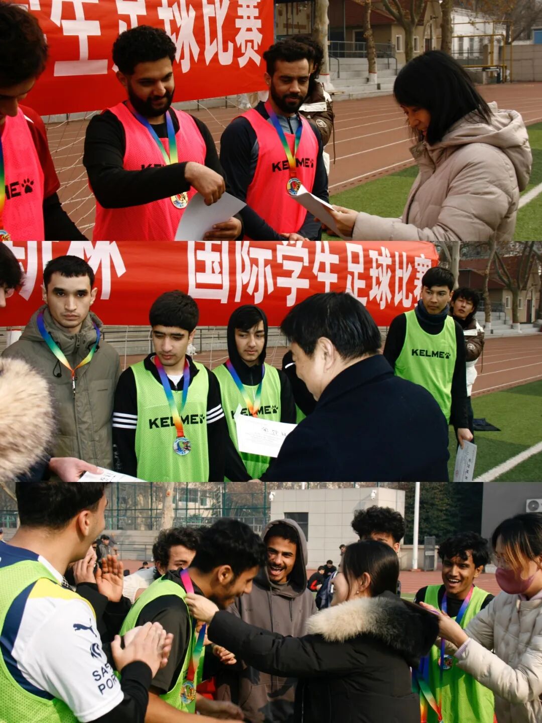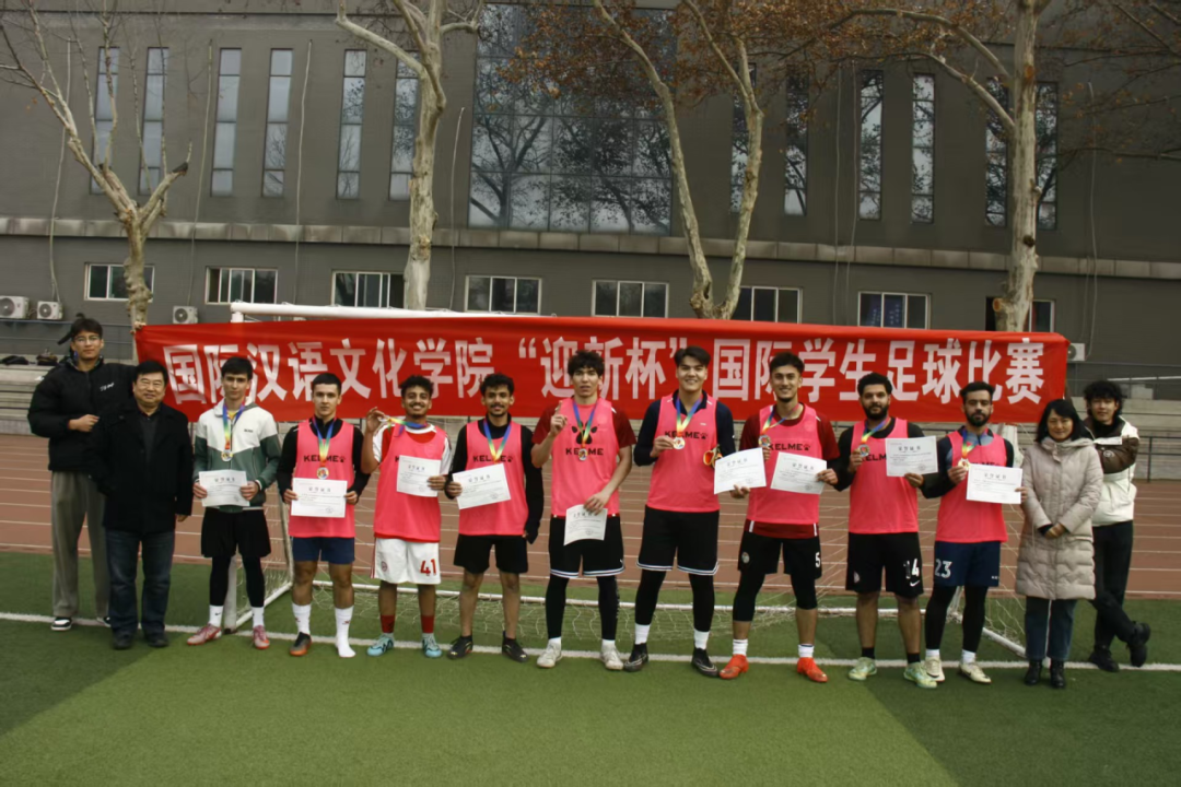 在雁塔校区田径场举办“迎新杯”国际学生足球赛。来自二十余个国家的7支队伍参加比赛,本次比赛历时一个月,经过11场的激烈角逐,于2025年12月30日完赛,学院院长石洛祥、党总支书记李小玲、党总支副书记王钰、团委书记翁思洁、留学生辅导员张欣元、留管干部刘小熊参加颁奖仪式。