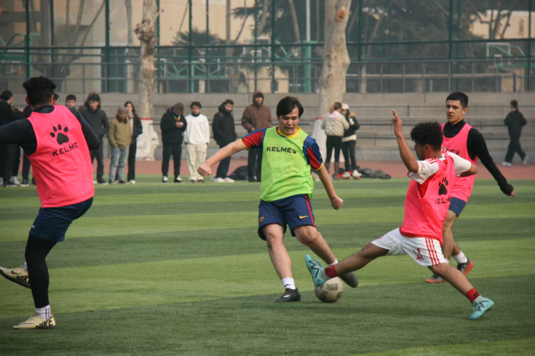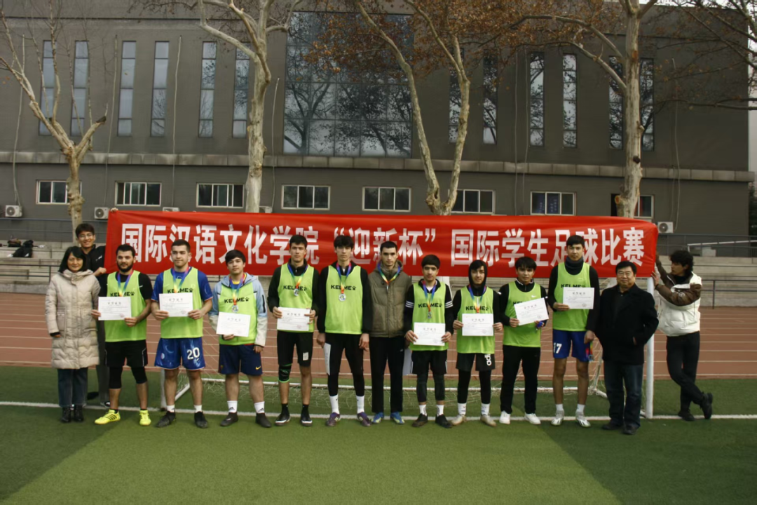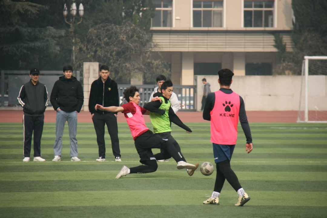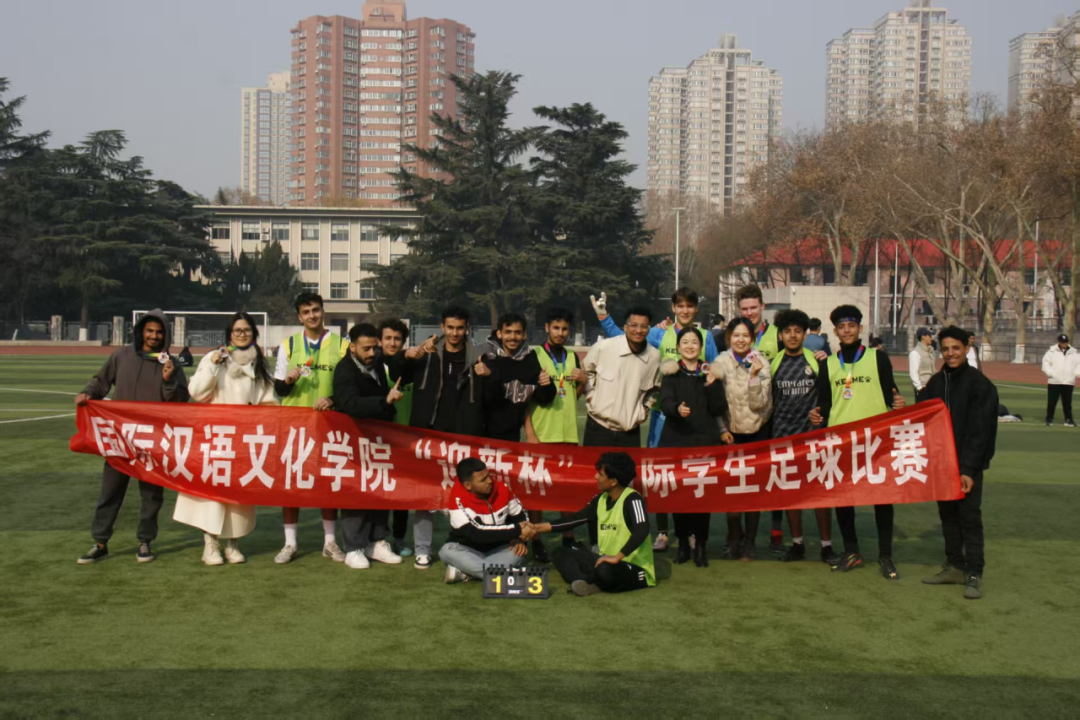 在雁塔校区田径场举办“迎新杯”国际学生足球赛。来自二十余个国家的7支队伍参加比赛,本次比赛历时一个月,经过11场的激烈角逐,于2025年12月30日完赛,学院院长石洛祥、党总支书记李小玲、党总支副书记王钰、团委书记翁思洁、留学生辅导员张欣元、留管干部刘小熊参加颁奖仪式。