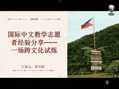 在韩国任教的付梦薇同学从“衣、食、住、行、教”等方面进行了细致入微的分享。她建议出发前可适量携带符合个人口味的调料与速食,并提前了解当地常用的生活APP与购物渠道。在教学方面,她结合实例,提醒即将赴任的志愿者注意语言差异、PPT设计细节、文化课程趣味性以及与合作教师的沟通协作,并贴心地列出了行前准备参考清单。