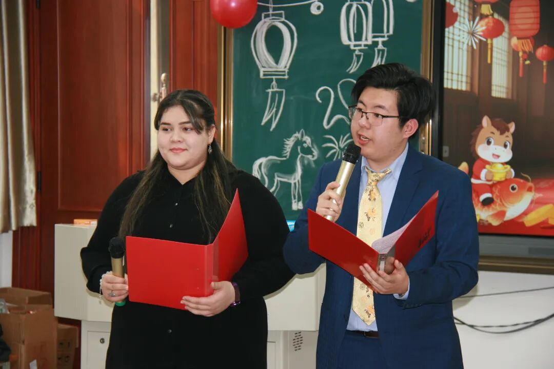 茶话会在吉尔吉斯斯坦留学生王新宇与土库曼斯坦留学生谭美珍的双语主持下拉开序幕。两位主持人热情洋溢的开场词瞬间点燃现场气氛,他们代表全体学子感谢学院的暖心安排,让大家在异国他乡感受到家的温暖。