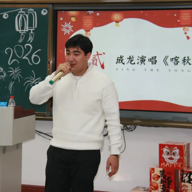 随后的才艺表演精彩纷呈,土库曼斯坦留学生成龙演唱经典歌曲《喀秋莎》,林丽同学的小提琴演奏悠扬婉转,艾涵同学和林丽同学的合唱赢得现场阵阵掌声,展现了留学生们的多元风采。