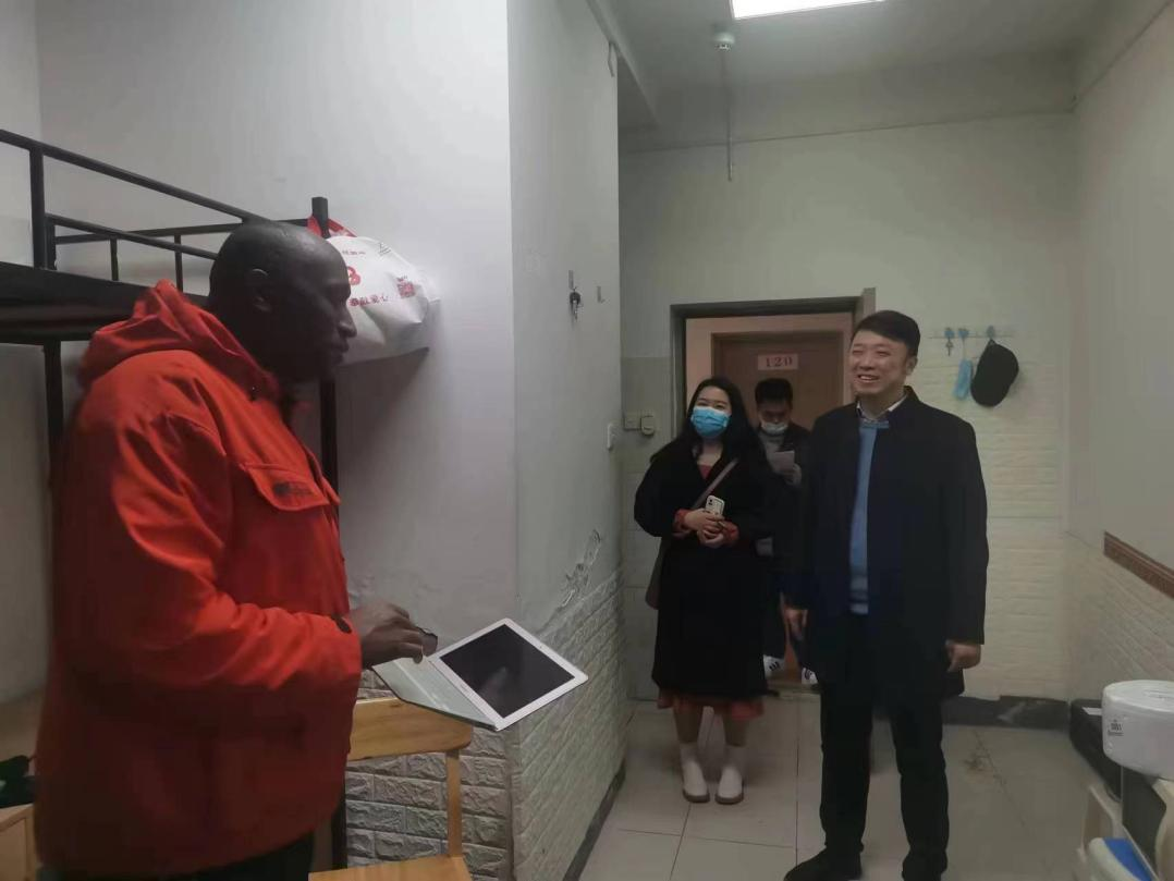 此外,老师们还去看望了国际学生,耐心地询问其学习和生活情况,叮嘱他们在遇到任何困难都可以向老师寻求帮助。