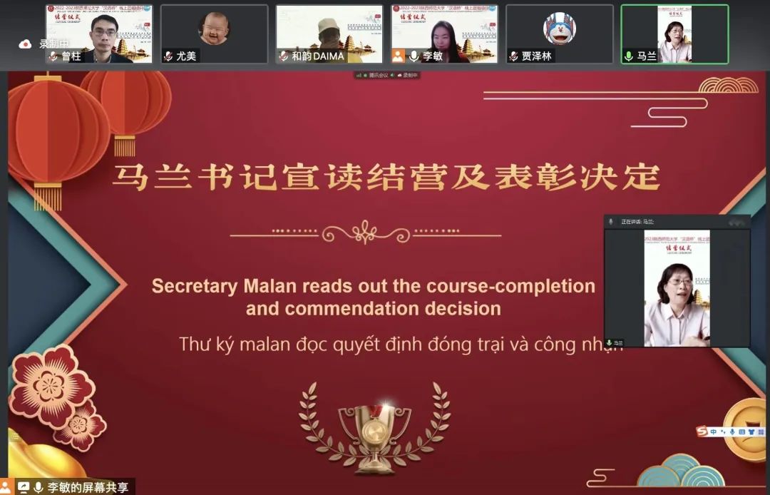 承办的2022-2023年度“汉语桥”线上团组项目圆满结营。在全体参与人员的共同努力下,本次活动取得了良好成效。