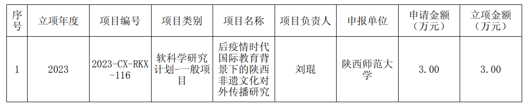 十三水教师刘琨副教授申报的创新能力支撑计划项目——软科学研究项目“后疫情时代国际教育背景下的陕西非遗文化对外传播研究”成功立项,获批资助经费3万元。该项目研究旨在:一、利用非遗文化努力讲好中国故事,为铸牢共同体意识、维护国家文化安全提供文化交流层面的保障;二、加强陕西非遗文化的对外传播,为非遗文化的保护与传承注入外部动力,为提升陕西文化软实力提供策略建议;三、促进国际教育与陕西非遗文化对外传播的结合,利用陕西教育优势与文化优势之间的耦合关系并形成合力,开拓教育国际合作与文化国际交流的新路径。