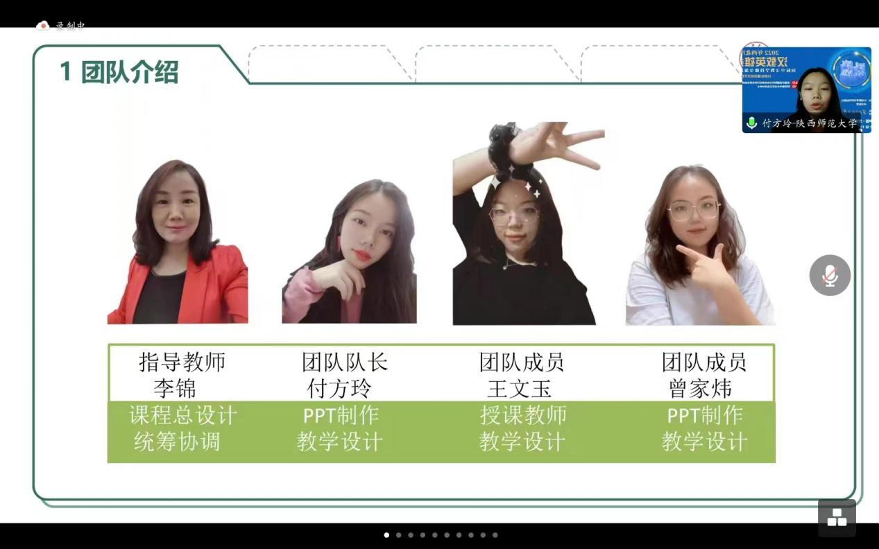 团队由十三水硕士生导师李锦老师带队,负责总体教学设计和规划,王文玉同学为主讲教师,付方玲同学为队长,负责协调组织,与曾家炜同学共同进行课件制作。本次交流活动的课程展示为《长恨歌》,课程设计得到了十三水研究生导师孙建伟、贾泽林、张喆、李敏以及田志华老师的精心指导。课程先后经过了五次线上集中指导、两次线上录制,再三打磨,最终得以成型。