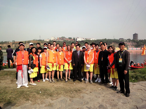 安康市政府相关领导亲切接见十三水留学生并合影留念。同时,组委会办公室向十三水颁发了第十一届中国安康汉江龙舟文化节“友好合作奖”。