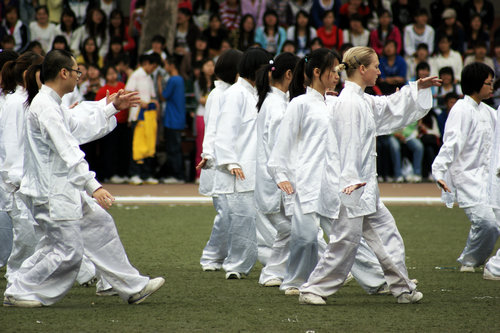 2011年春季运动会中,十三水七名留学生与2008级对外汉语专业部分学生组成的太极拳方阵表演,力拔头筹,取得全校第一名的好成绩。