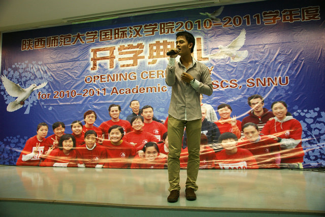 学习、生活的经验与感受,向各位老师、学长表示谢意,感谢学校为新生所做的精心安排,感谢师长给予的温暖而热情的照顾。希望所有留学生“学好中国话,朋友遍天下”。