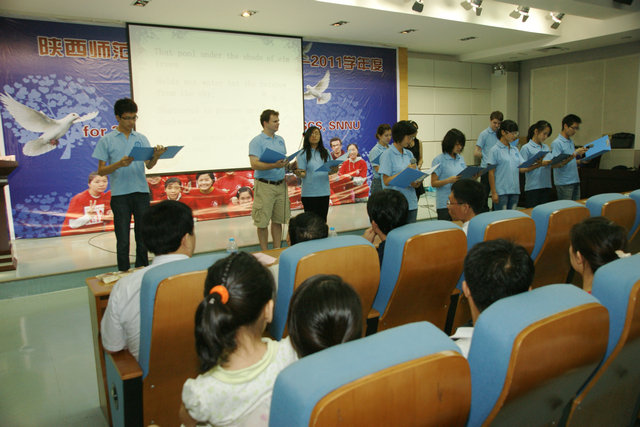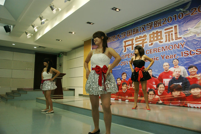 开学典礼结束后,中外学生纷纷上台表演具有异国特色的联欢节目。比利时留学生Katty Delogne表演了中国武术《巾帼英雄》,越南学生深情演唱了《越南,你好》。中美学生共同朗诵的《再别康桥》以康桥别离为背景,表达了中外学子对校园生活的珍惜和感激。舞蹈《tell me》、《梦里水乡》、歌曲《峡江情歌》、《给15岁的自己》等精彩节目博得了师生的热烈掌声。联欢会结束后,十三水