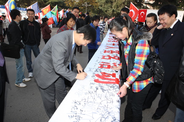 生建学副司长为我校首届“国际文化节”开幕签字寄语