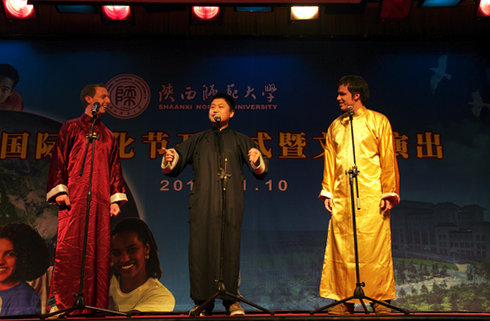 “国际文化节”开幕式由张建祥副校长主持。房喻校长首先代表学校为开幕式致辞。他说首届“国际文化节”是我校大力推进教育国际化战略,加快学校向一流大学迈进的重要事件,也是学校校园文化建设中最具时代特色活动的精彩亮相。通过此次活动,将培养和锻炼一大批热心国际交流的教师和干部;激发更多学生对参加国际交流的热情,自觉地投入到国际化人才竞争的行列之中;同时将推进学科设置、课程改革、双语教学、教材建设以及外事管理等方面的改革。生建学副司长、刘京辉秘书长分别代表教育部、国家留学基金委对我校首届“国际文化节”的成功开幕表示祝贺,并希望我校国际化办学之路走出特色,越走越好;我校外籍教师代表克里斯蒂安娜·施奈德、教师代表张成孝、学生代表王雁也从各自角度,结合自身在国际交流方面的经验做了发言,表达了参与国际交流对十三水