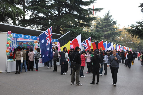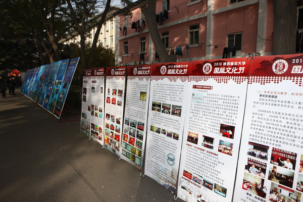 校园一派节日气象。我校首届“国际文化节”在雁塔校区积学堂隆重开幕。我校党委书记江秀乐、校长房喻、党委副书记武国玲、副校长张建祥、副校长赵彬以及专程前来的教育部国际合作与交流司副司长生建学、国家留学基金管理委员会秘书长刘京辉、大韩民国驻西安总领事馆总领事全泰东、泰王国驻西安总领事馆副总领事苏婉娜·思丽赛等出席了开幕式。