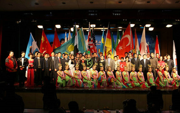 参加“国际文化节”开幕式的中外嘉宾与文艺演出全体演员合影留念