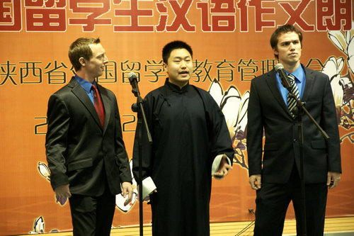 承办。来自西安交通大学、西北大学、西安外语大学、西安石油大学以及我校的专家担任了比赛评委;陕西省教育厅国际处处长李鸣、副处长郭宏毅、陕西省外国留学生教育管理学会会长孟长勇等出席观看了比赛。