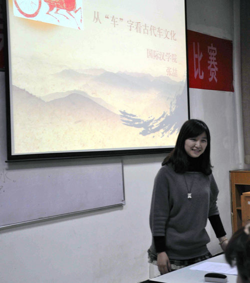 副院长赵学清主持了本次比赛,他简要介绍了此次比赛的筹备情况和举办意义并预祝教师们取得优秀的成绩。随后,比赛正式开始。八名青年教师分别从汉语写作、汉语口语、汉语语法、民歌练唱、汉字文化等角度入手,充分利用比赛时间,演绎了一堂堂精彩而生动的教学示范课,并赢得了台下观众阵阵热烈的掌声。副院长王晓凌也有感而发,对各位青年教师的精彩讲课给予了高度赞扬,肯定了各位教师的成绩,同时也指出了讲课中存在的一些小问题,并希望教师们在以后的教学过程中不断取得进步。