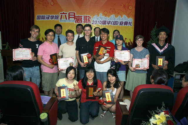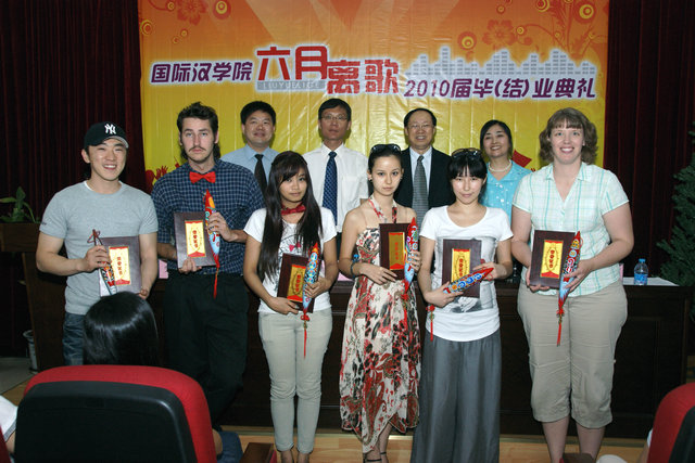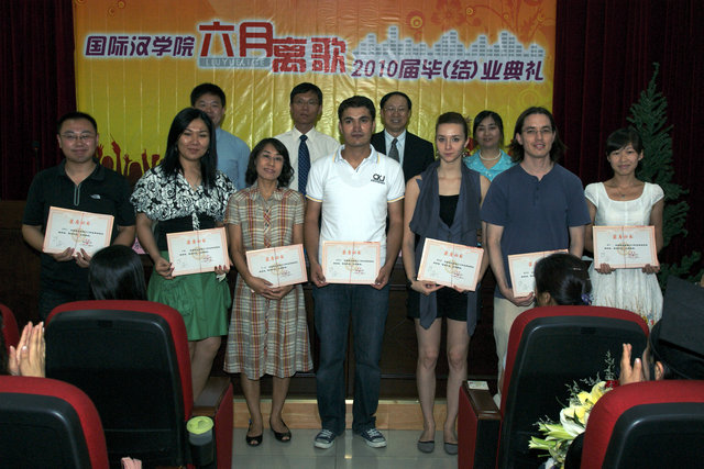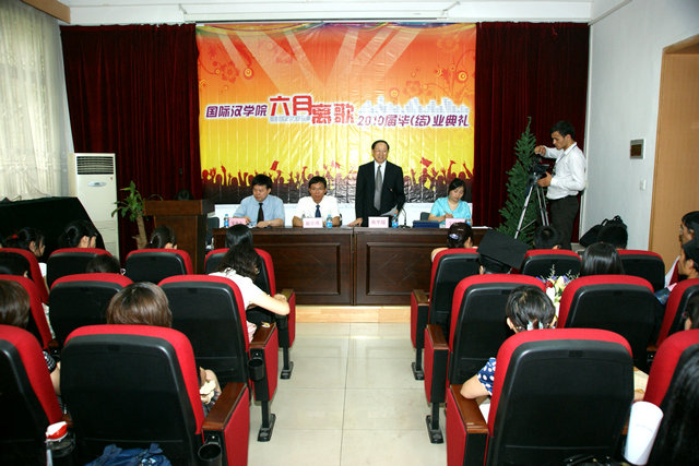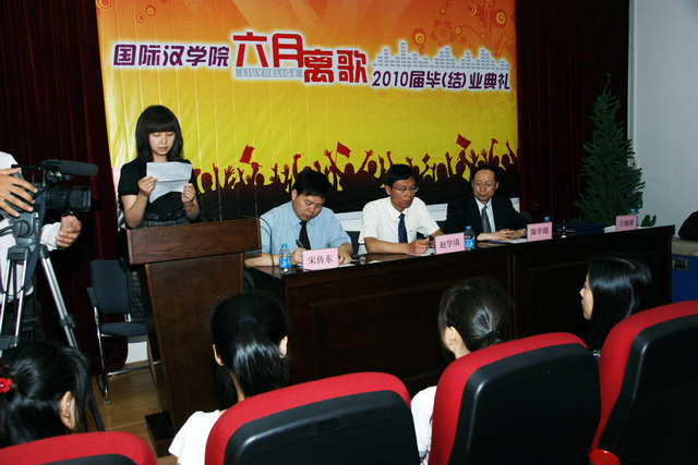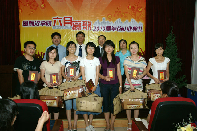 2010届留学生、研究生、对外汉语专业本科生以及获奖留学生都参加了典礼。典礼在悠扬的乐曲中拉开帷幕。