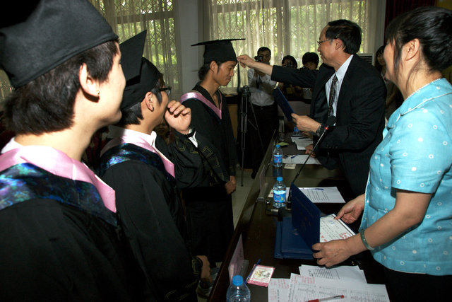 随后,陈院长为留学生颁发了毕业证书。韩国的金东炫同学代表留学生毕业生发言。他用流利的汉语表达出内心激动的情绪及对十三水