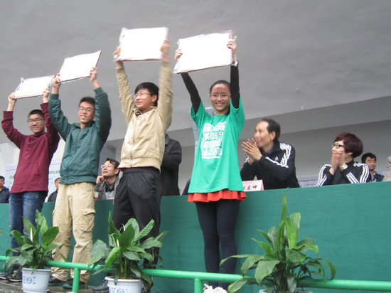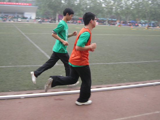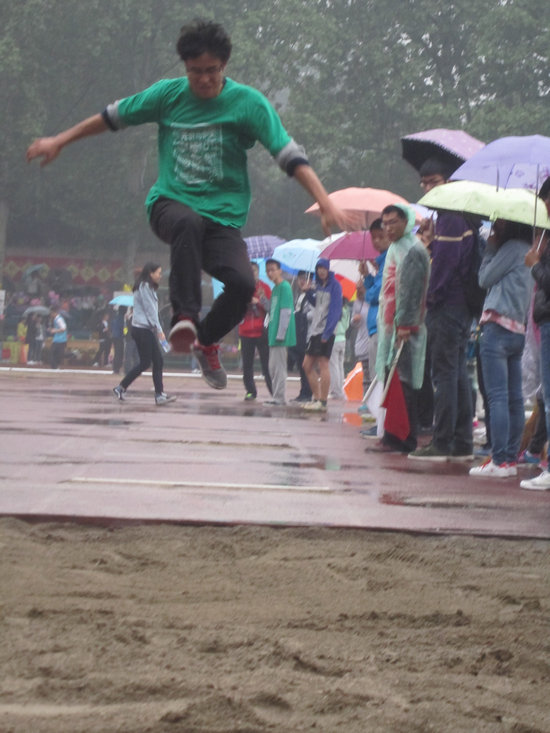 为运动员们准备了矿泉水、巧克力等补充能量。18日大雨浇灌了整个运动场,可是我们的同学们毫不退缩,以火一般的热情坚持到了最后。