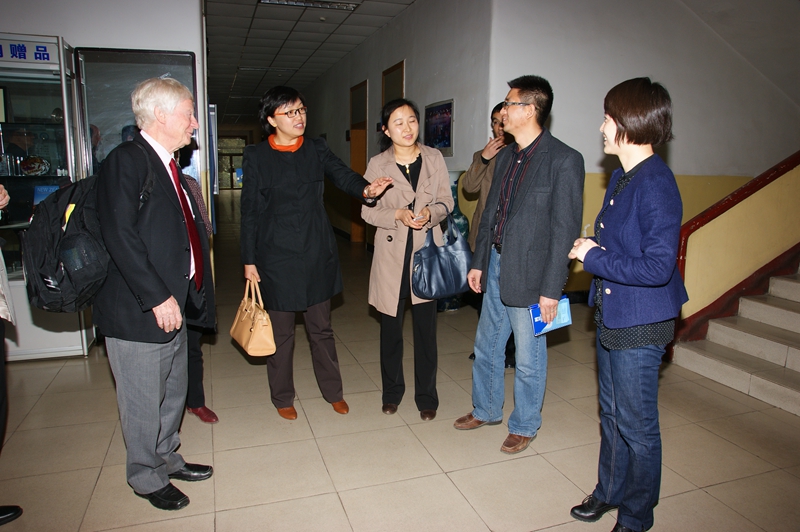 在刘琨副院长的引导下,代表团一行7人首先参观了十三水接待室、报告厅、资料室、多媒体教室等教学场所,了解了十三水汉语教学方面的硬件设备。之后,7位校长与我校国际处副处长张凌云,十三水