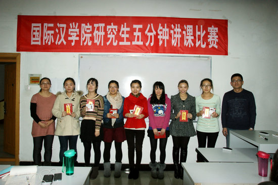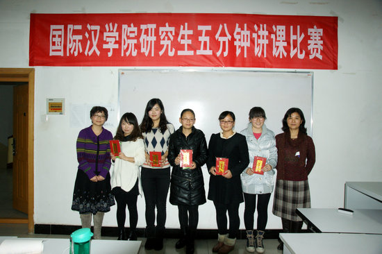 比赛评出一等奖3名、二等奖5名以及三等奖7名。汉语国际教育硕士专业的高一平、游婧悦及董婧同学获得了一等奖,李晓娇、呼启华、郭亚会等5位同学获得二等奖,周丹、马娜丽沙以及应用语言学专业的刘洋等7位同学获得了三等奖。